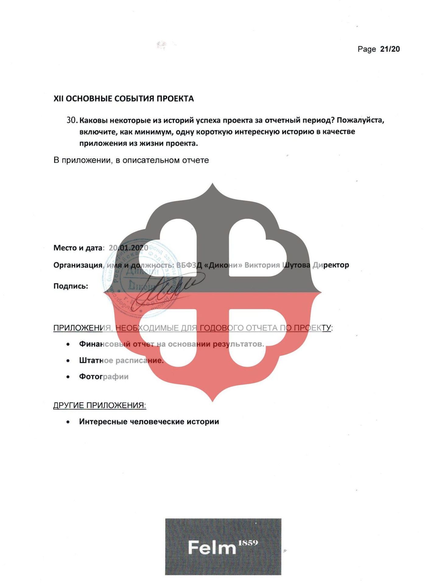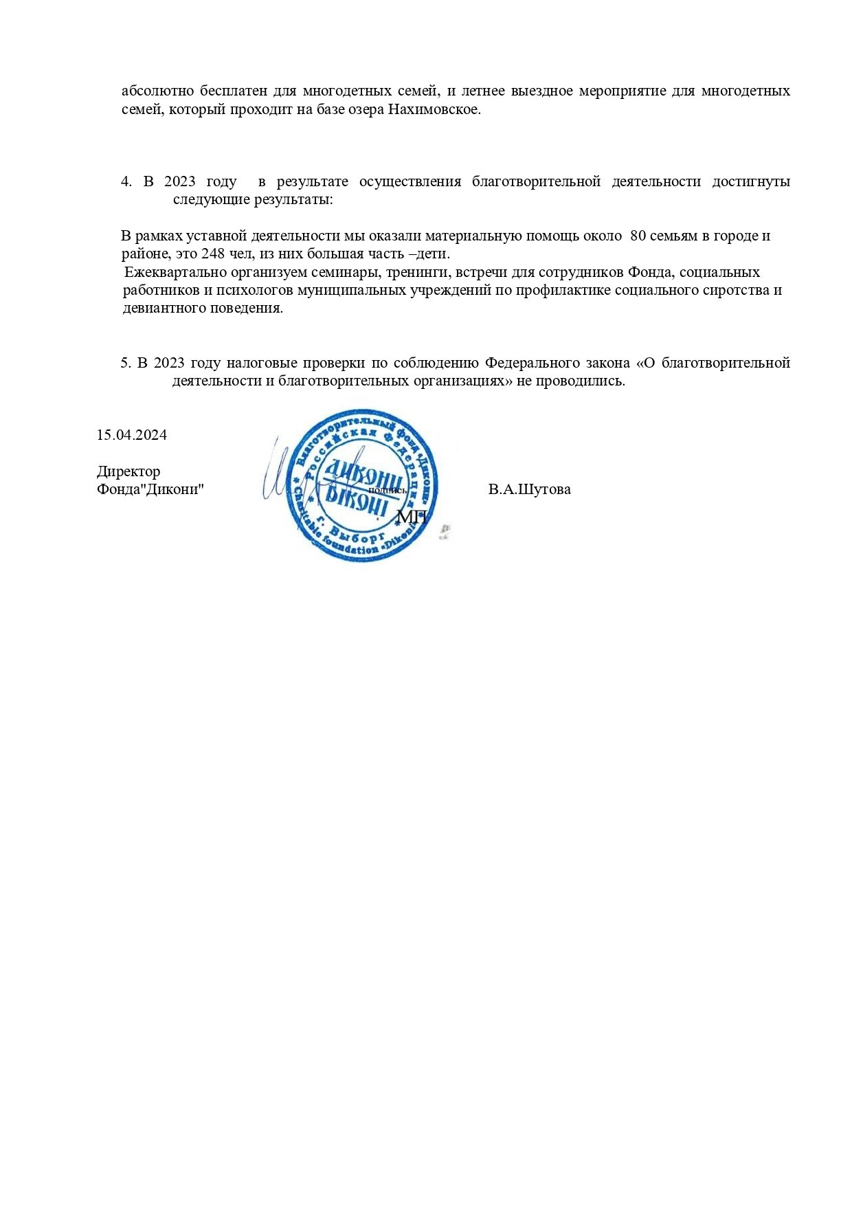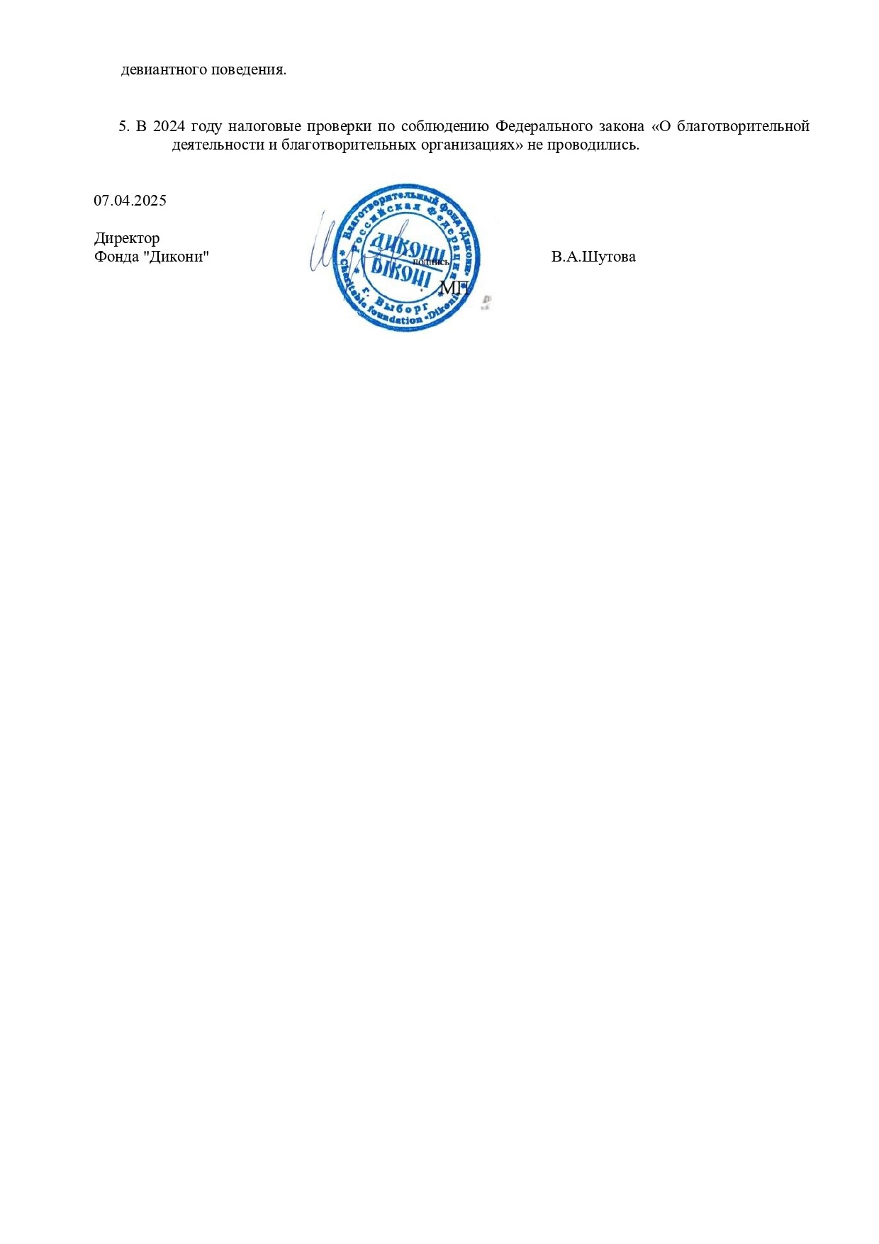 5. Подпись и реквизиты Получателя пожертвования