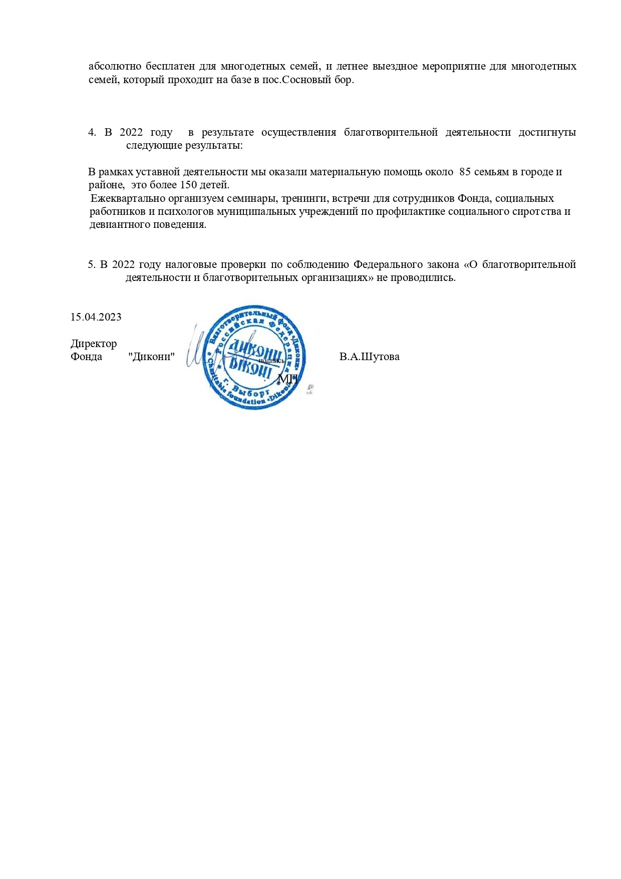 Выборгский благотворительный фонд защиты детей "Дикони" (Директор: Шутова Виктория Андреевна), предлагает гражданам сделать пожертвование на ниже приведенных условиях: