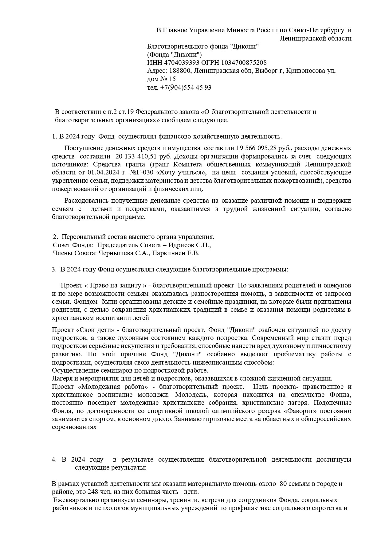 «Получатель пожертвования» - Выборгский благотворительный фонд защиты детей "Дикони".