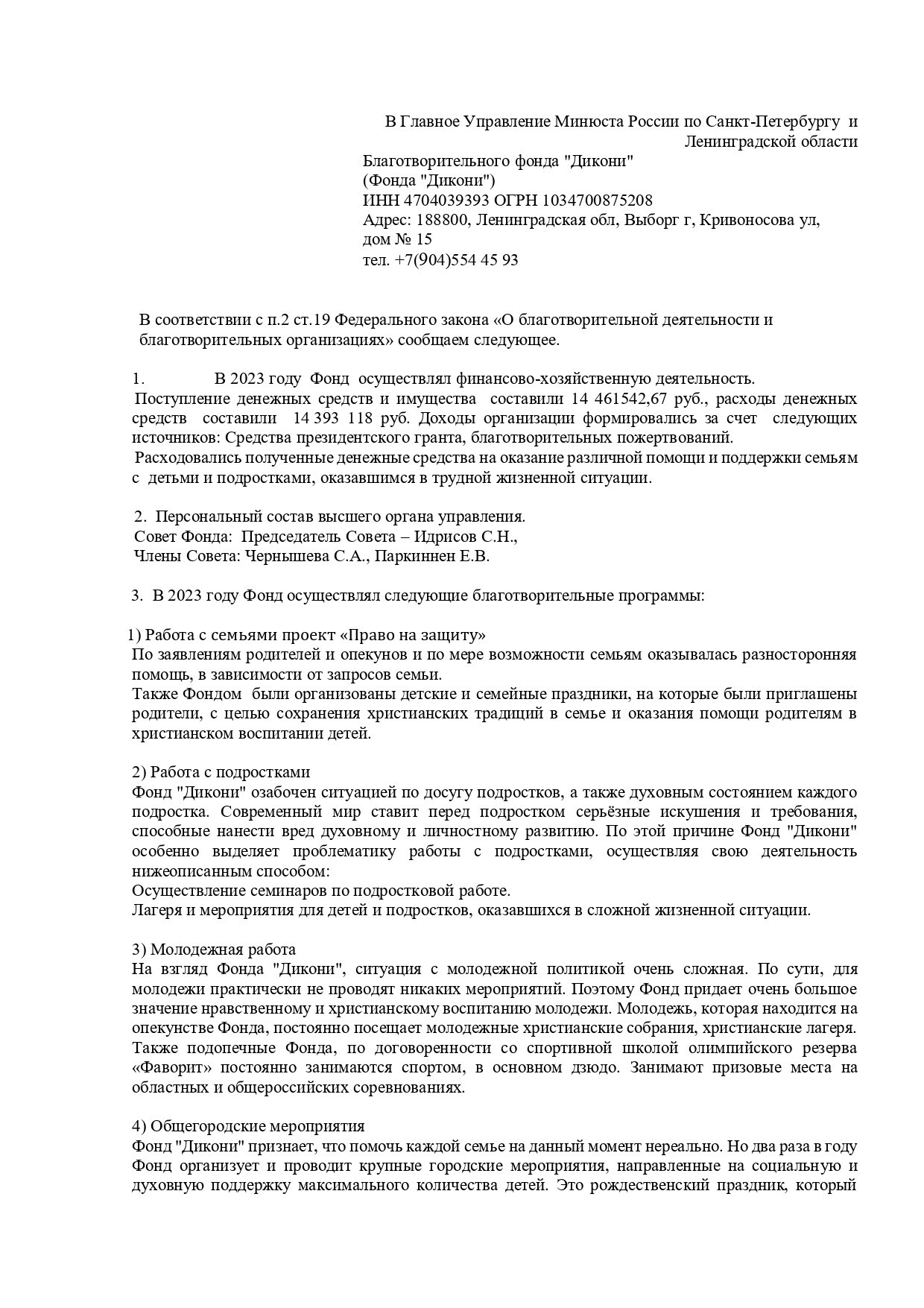 Выборгский благотворительный фонд защиты детей "Дикони"